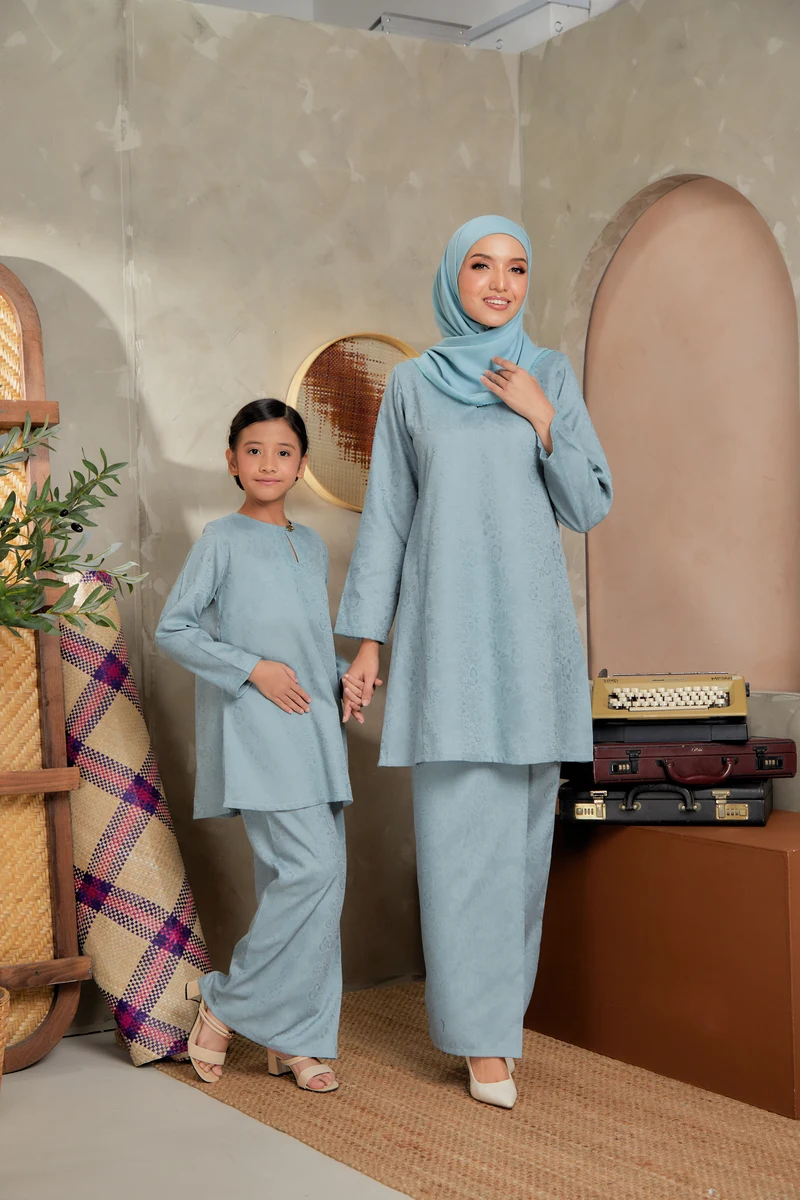 Kurung pahang pesak cutting with floral button design.